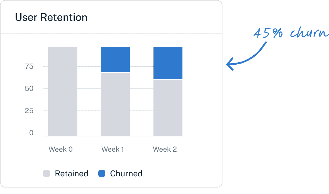 The meeting minutes feature in Buildsys was a key driver of user adoption, but unfortunately, it was experiencing significant churn since its rollout. This was concerning since the high churn rate of the meeting minutes feature could have a ripple effect on Buildsys as a whole.