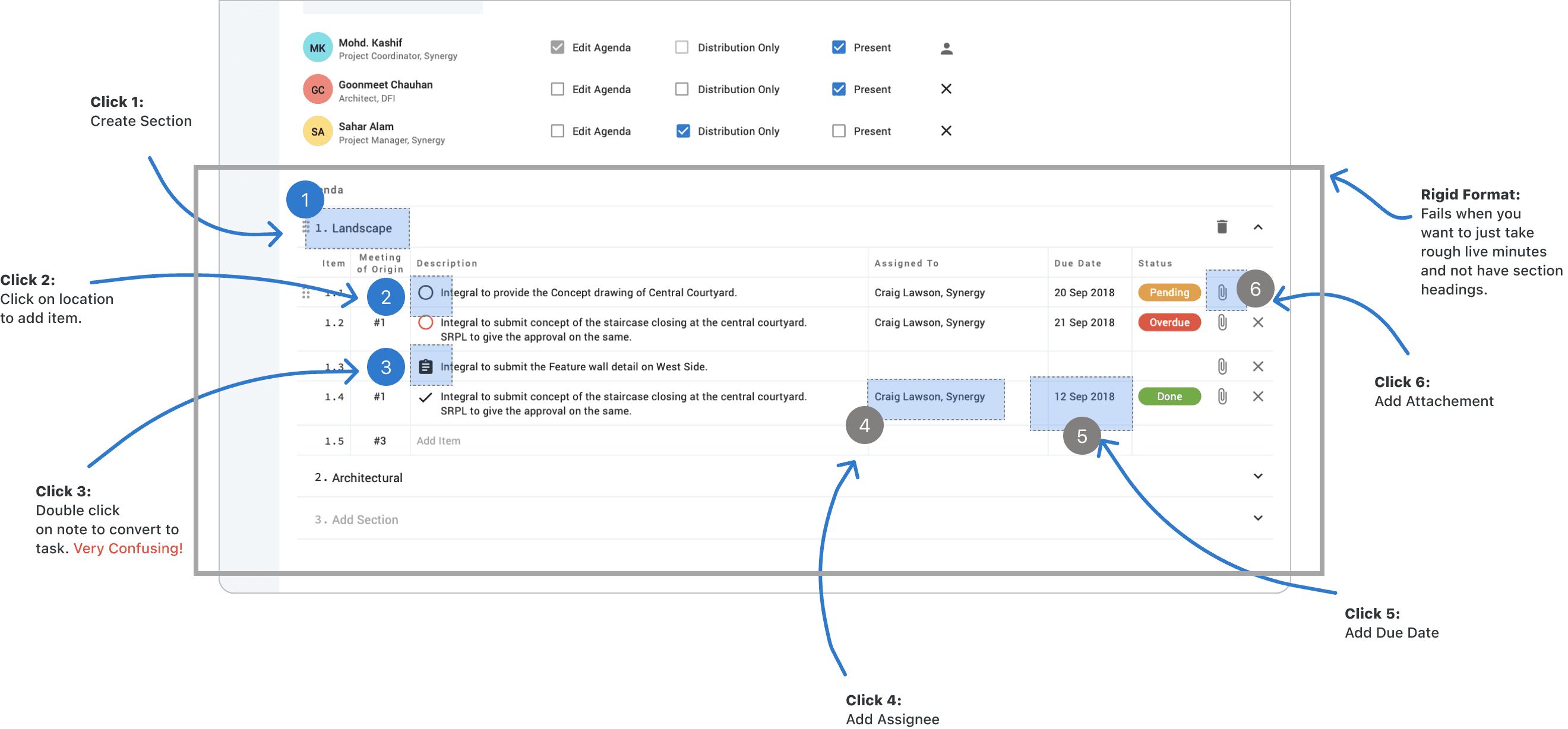 As a result, Buildsys was not being used to take live minutes. Serving as a record keeping tool, Buildsys was an extra step in the workflow.