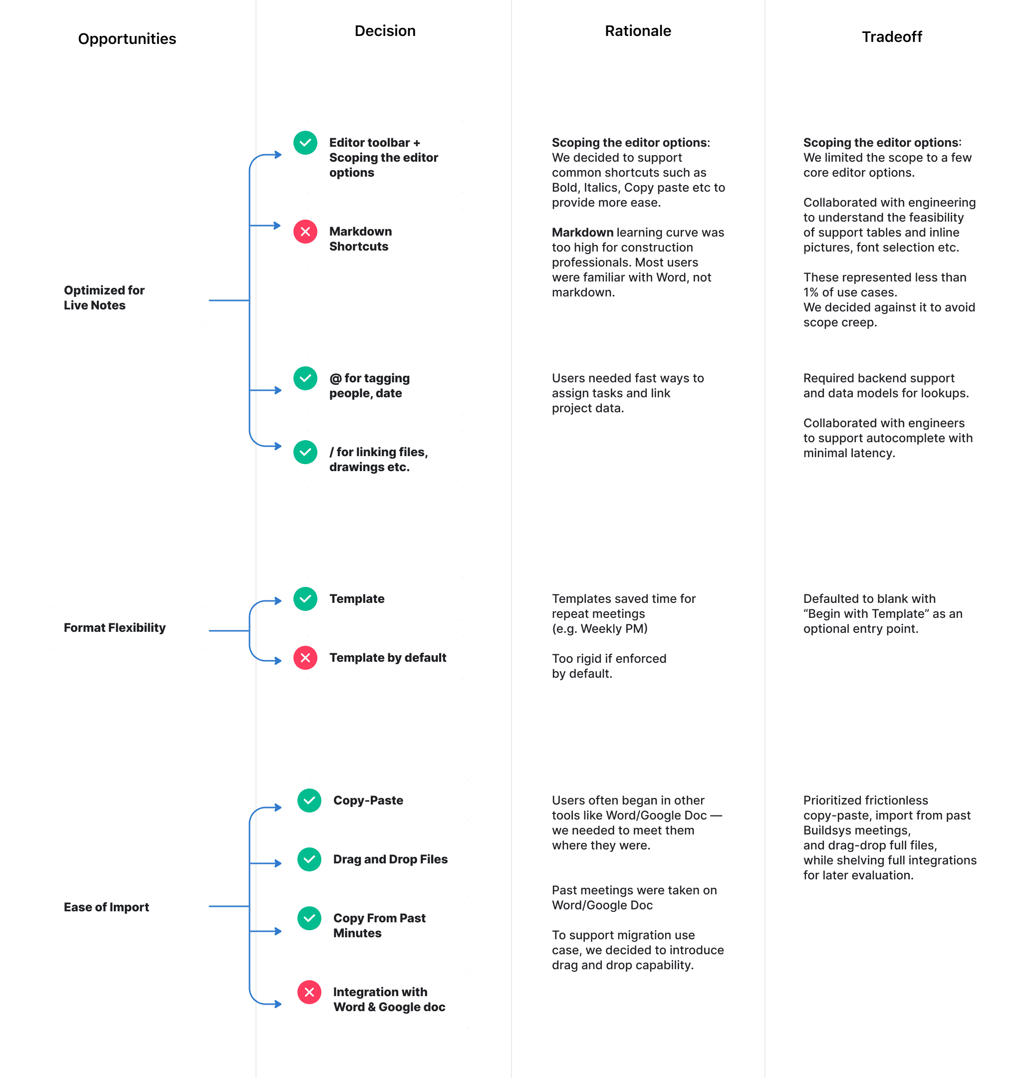 I used data analysis and usability research to identify pain points and introduced a WYSIWYG editor for taking meeting minutes, reducing churn by 42%.