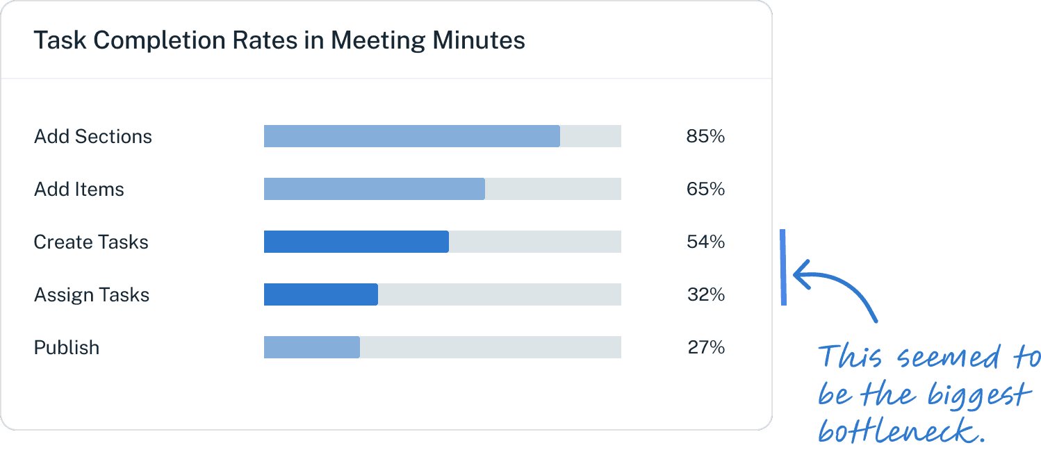 Ok, let's look at the task completion rates for meeting minutes.